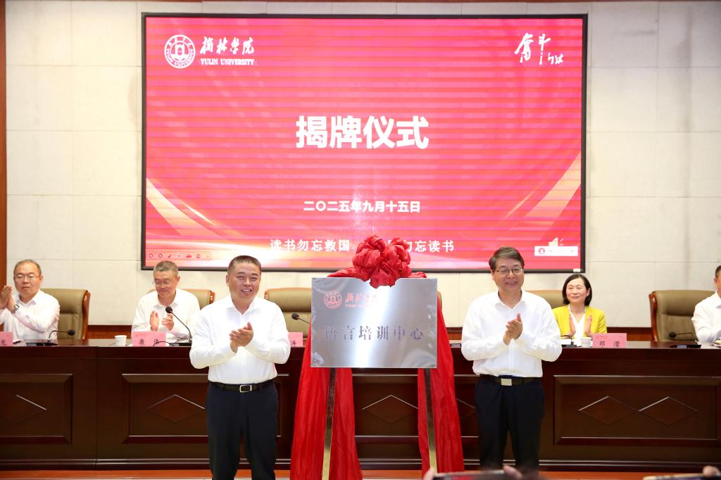 西安外国语大学党委书记刘振涛和开元集团网站党委书记张新柱共同为“开元集团网站语言培训中心”揭牌。