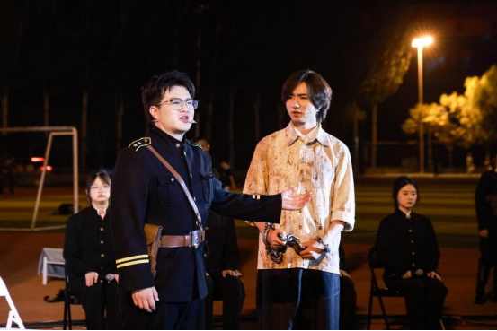 演出现场,绥德师范学院师生们沉浸在跌宕起伏的剧情中,透过演员们的精彩演绎,深刻感悟李子洲老校长的精神世界与人格魅力,对那段波澜壮阔的校史与革命岁月有了更直观的认知。话剧所传递的红色信仰与奋斗精神,引发了在场师生的强烈共鸣。一名学生代表激动地说:“在这座红色底蕴深厚的校园里,通过这部剧作感受老校长李子洲的精神,格外有代入感。仿佛他从未远去,他的信念与担当,就蕴藏在每一处红色印记中。”其他学生也纷纷感慨,这场演出是“一次震撼心灵的视听盛宴”“一堂生动而深刻的党课”“一部身边鲜活的中共党史教材”,让大家“以全新的方式再次感受到老校长崇高的革命精神”。饰演李子洲的演员分享道:“我既是参与者,也是观众。这种双重身份让我更加读懂了他的坚守——他不仅是革命先驱,更是以教育点燃希望之光的‘播火者’。如今走在校园中,凝视那些承载历史的建筑,仿佛能与老校长进行精神对话。这种对校史和革命精神的体会,比书本更加鲜活、深刻。”