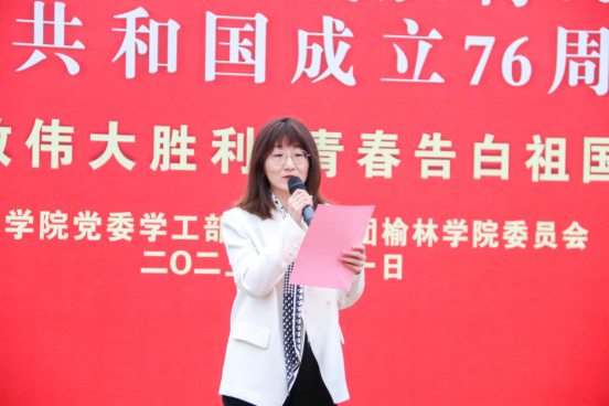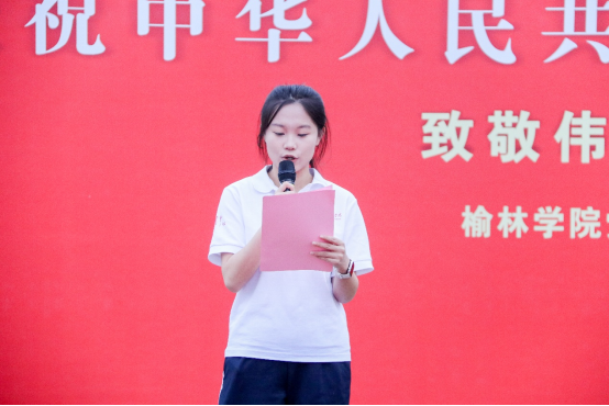 升旗仪式后,现场全体师生将对祖国最真挚的祝福、最深厚的情感融入到歌声中,齐声合唱《我和我的祖国》,激昂的歌声在校园上空回荡,表达了榆苑学子对祖国的深情告白。