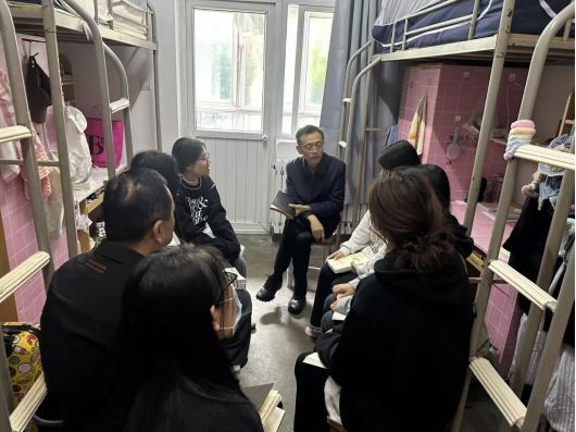 走访过程中,苗延宏细致察看了新生住宿环境,与同学们围坐一堂,亲切询问“家乡何处”“是否适应榆林的气候、饮食”“大学第一课感受如何”。同学们敞开心扉,畅谈入学以来的体验与困惑,内容涵盖专业认知、学业转型、课余规划等多个方面。