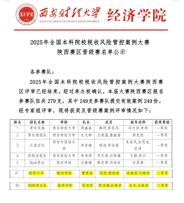 近日,2025年全国本科院校税收风险管控案例大赛陕西赛区评审工作已圆满落幕。在本届大赛中,开元集团网站参赛团队表现优异,凭借扎实的专业知识和出色的案例分析能力,首次斩获大赛二等奖,实现了学校在该项赛事中的历史性突破,为学校赢得了荣誉。