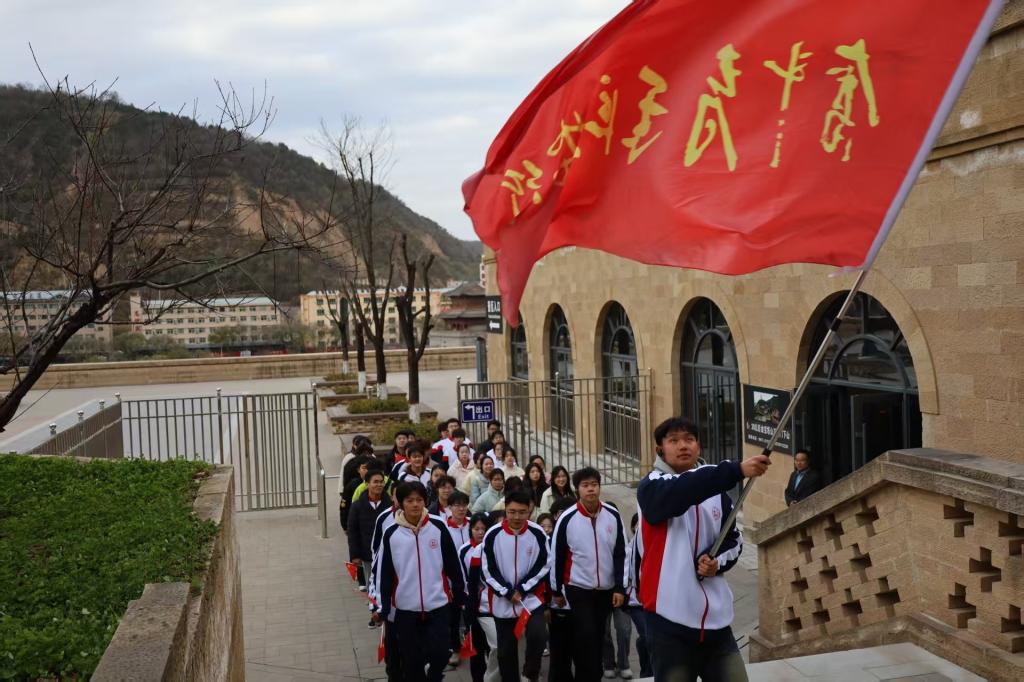 在杨家岭革命旧址,同学们驻足于毛泽东同志会见美国记者安娜·路易斯·斯特朗的石桌前,走进毛泽东、朱德等老一辈革命家旧居,从斑驳的窑洞与简朴的陈设中,切身感受革命岁月的艰辛与不易。在中共中央办公厅旧址和中共七大会址中央大礼堂,师生重温延安文艺座谈会精神与毛泽东思想确立的重大历史意义,深刻领会文艺为人民服务的根本宗旨。