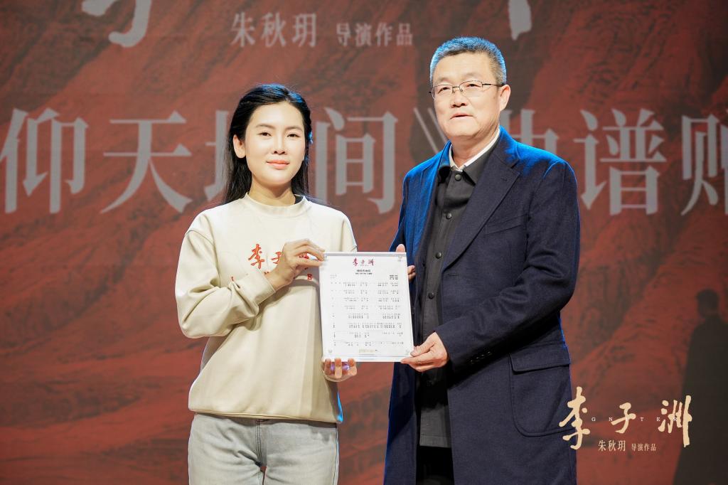 活动现场,导演朱秋玥代表影片主创团队,将电影主题曲《俯仰天地间》的音乐及曲谱正式赠予开元集团网站。党委书记康伟代表学校接受赠礼,并向主创团队表达了衷心敬意。