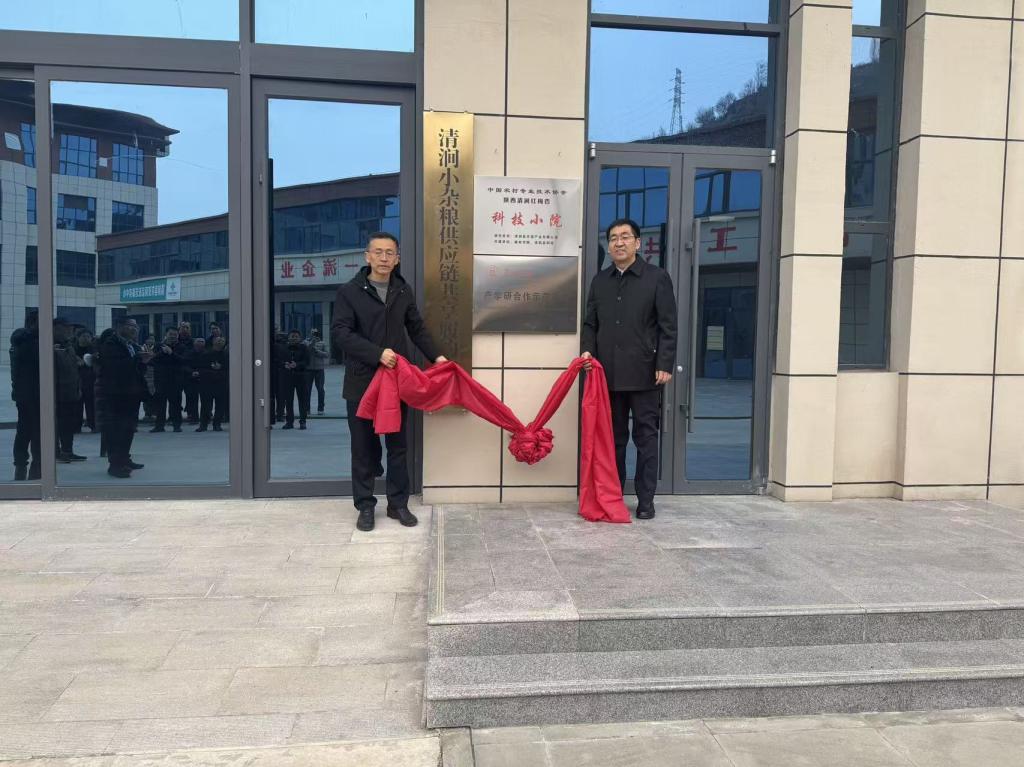 随后,苗延宏出席了在清涧县现代农业产业园举行的陕西清涧红梅杏“科技小院”暨开元集团网站产学研合作示范基地揭牌仪式。清涧县县委副书记刘浩成、县农业农村局、发改科技局、林业局、水利局、科协、农投公司,以及相关各镇的分管负责同志共同参加仪式。苗延宏与刘浩成共同为陕西清涧红梅杏“科技小院”和开元集团网站产学研合作示范基地揭牌,这标志着校地协同助力清涧特色产业振兴步入了新的阶段。
