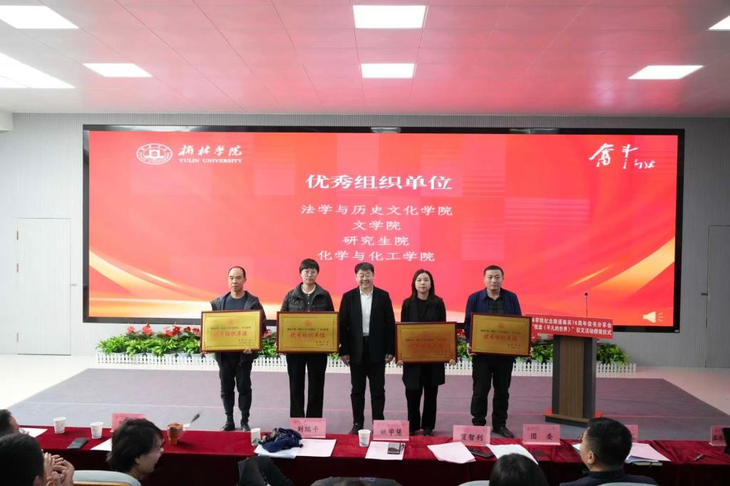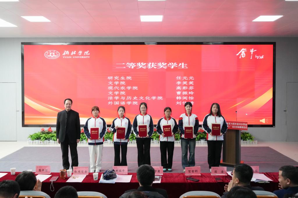 活动对“我读《平凡的世界》”征文活动获奖学生及优秀组织单位进行表彰。此次征文活动共评选出一等奖3名、二等奖6名、三等奖10名、优秀奖16名,法学与历史文化学院、文学院、研究生院、化学与化工学院获优秀组织奖。活动在体育学院24级体育教育专业雷凌宵同学演唱的《神仙挡不住人想人》的悠扬歌声中画上圆满句号。