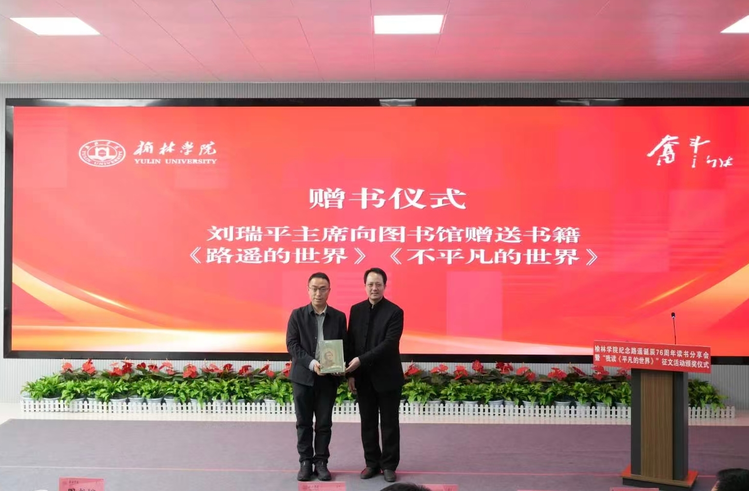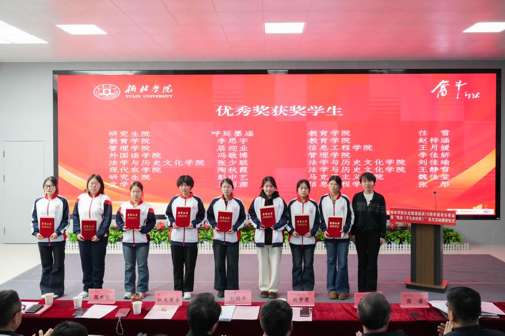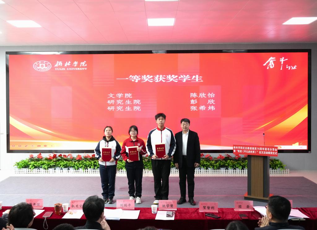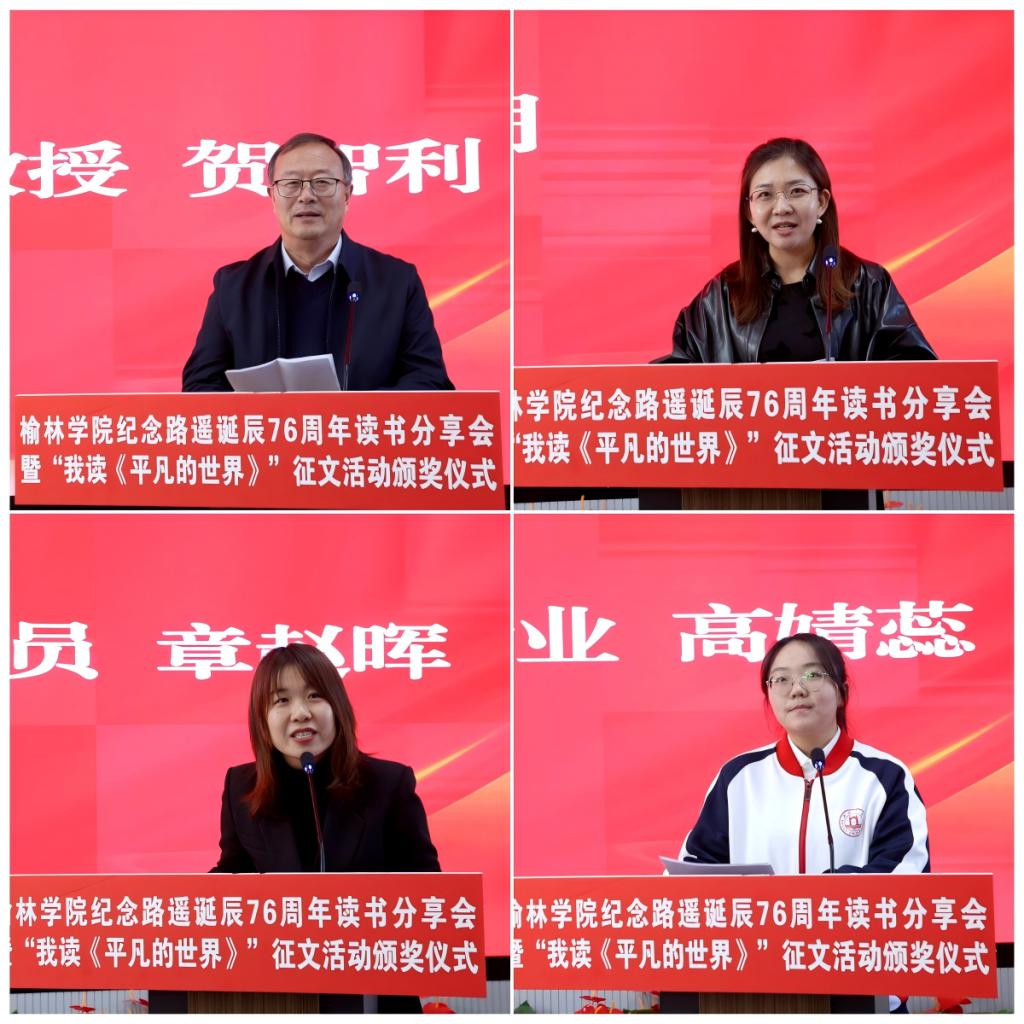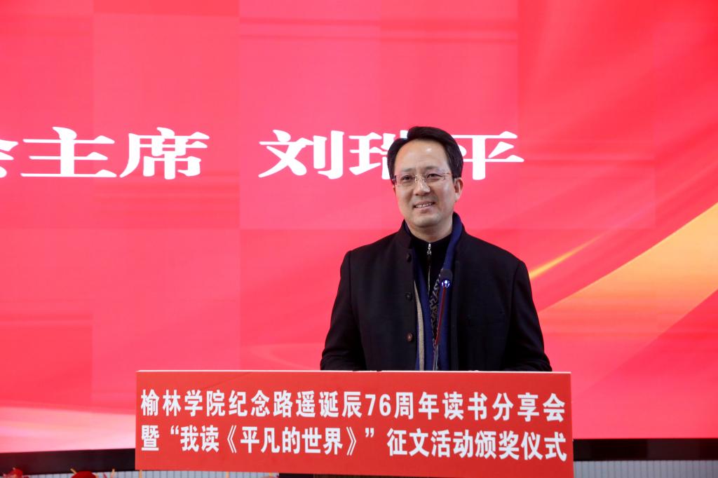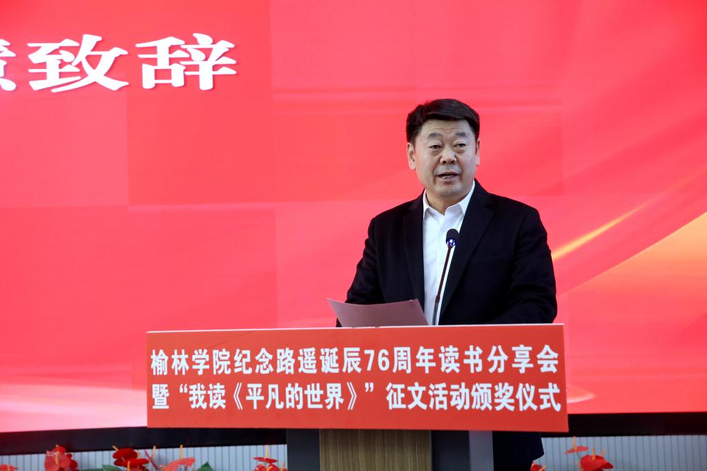 姚学慧在讲话中指出,路遥先生扎根陕北黄土地,用生命书写平凡中的伟大,其作品跨越时空,温暖了几代读者的心灵。学校持续深化“五乐育人”工程,将《平凡的世界》作为“奋斗之书”赠送给新生,四年累计赠送13200本,并通过“走进公寓问需求”等主题活动,让经典阅读融入师生日常。他向师生提出三点希望:一是以乐读滋养心灵,坚持阅读经典,在书香浸润中感悟路遥精神,树立正确的世界观、人生观、价值观,锚定人生精神坐标;二是以实干锤炼本领,以路遥精神为指引,脚踏实地、勤奋学习,在实践磨砺中增长才干,用奋斗书写青春答卷;三是以担当回应时代,传承学校奋斗基因,将个人理想融入地方发展,在陕北大地上勇担使命、成就不凡。