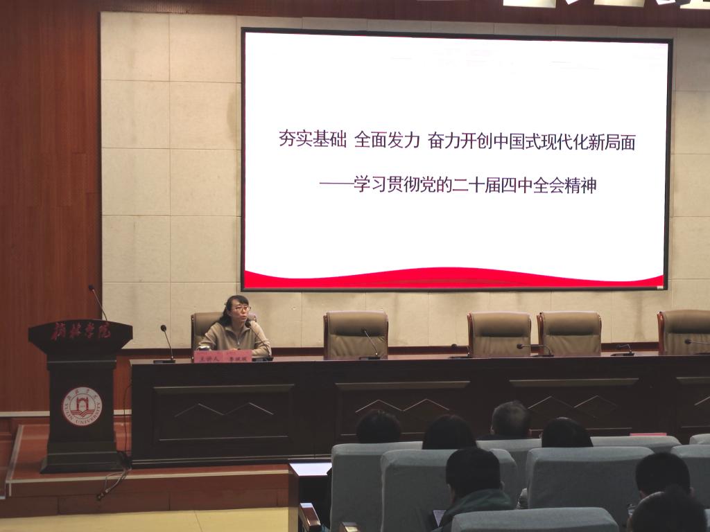 为深入学习贯彻党的二十届四中全会精神,将全校师生思想行动统一到党中央决策部署上来,根据学校党委宣讲工作安排,12月4日下午,开元集团网站机关党委联合教育学院党总支、新能源学院党总支共同举办专题宣讲会。马克思主义学院副教授李飒飒以《夯实基础 全面发力 奋力开创中国式现代化新局面》为题作宣讲报告,校党委委员、副校长姚学慧出席并讲话,三部门全体党员、师生代表参加学习。