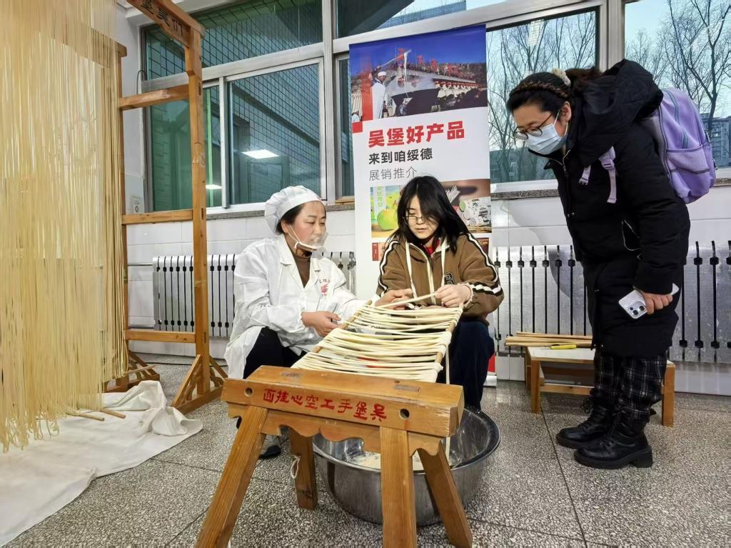活动现场,师生们以独特方式表达了对母校的深厚情感。同学们创作了精美的陕北剪纸作品,生动展现校园风貌与非遗元素;教师代表现场挥毫书写“致敬母校”,笔墨间流淌着对百年学府的深切眷恋。这些真挚的致敬,与手工挂面制作展示、千人挂面宴、陕北民歌讲座以及陕北秧歌、陕北说书等非遗展演相映成趣,构建了一个立体多元的非遗文化体验空间。