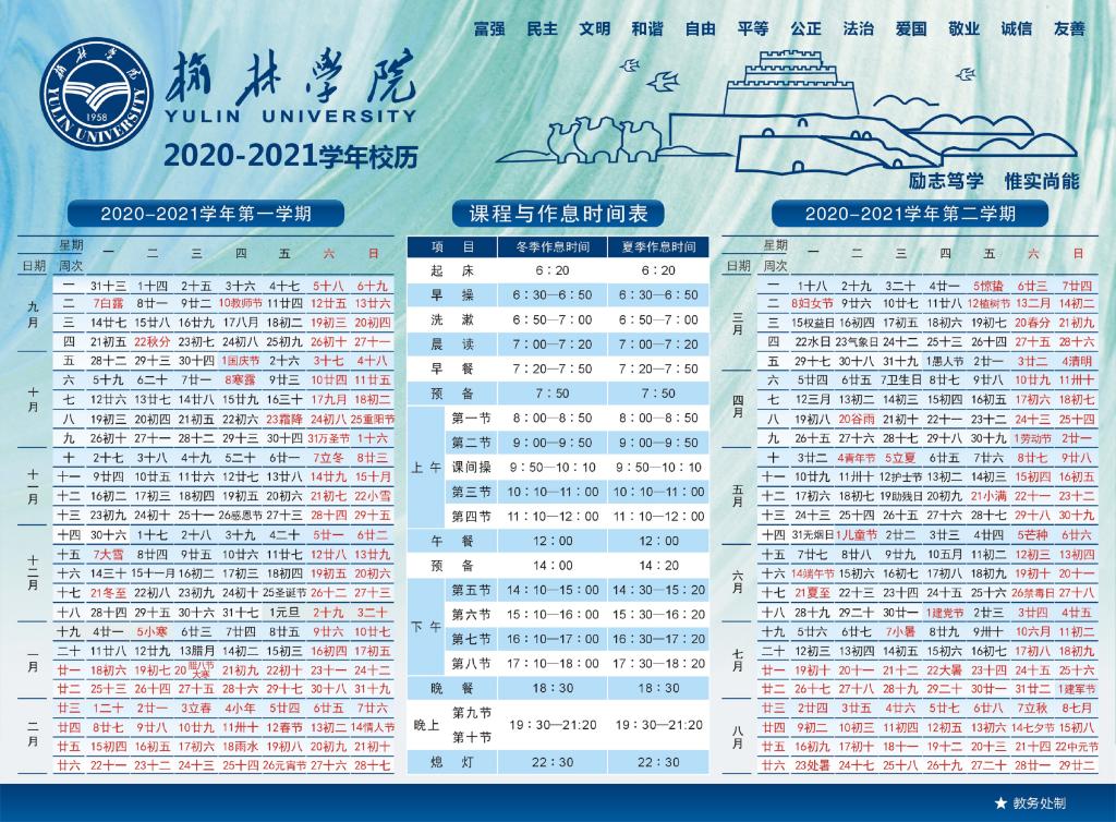 2020-2021开元集团网站校历