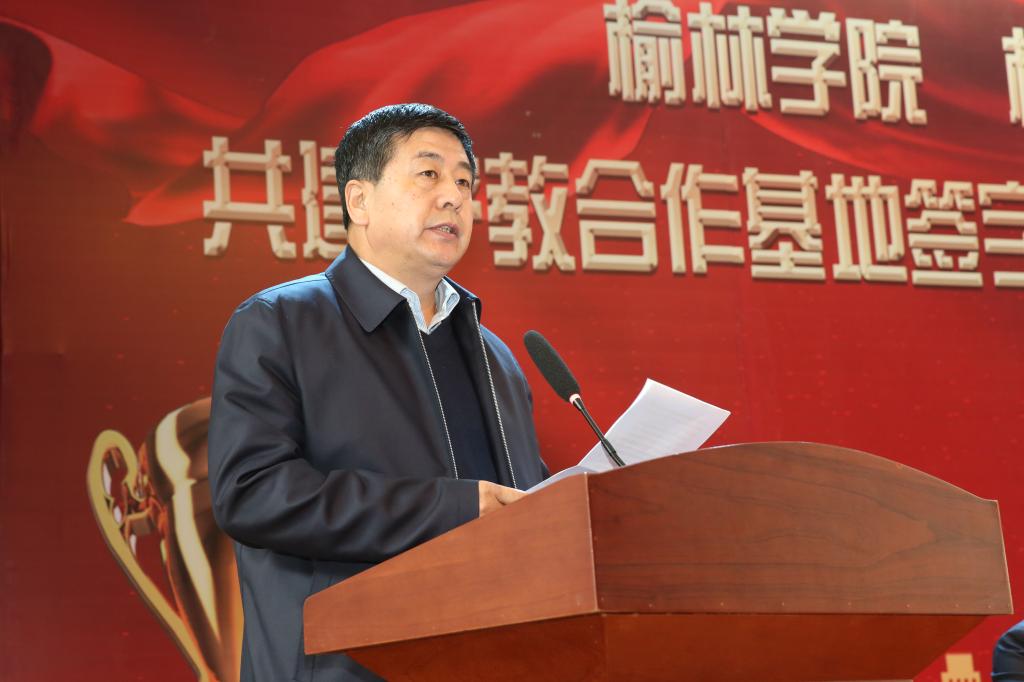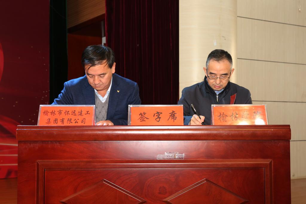 校党委书记、教育发展基金会理事长许静洪与榆林市怀远建工集团有限公司董事长徐怀清分别讲话;开元副校长张富林,副校长、教育发展基金会副理事长张晓,党委副书记尚爱军;怀远建工集团有限公司副总经理徐怀平、徐怀利、高世鱼,总工尚瑞华在主席台就座。