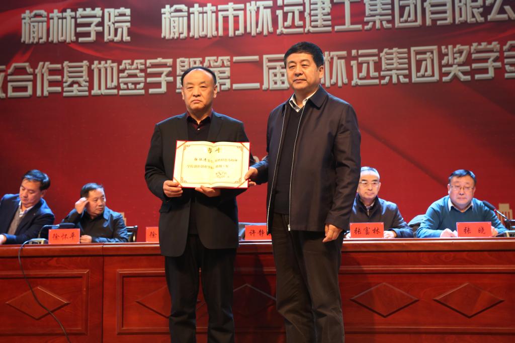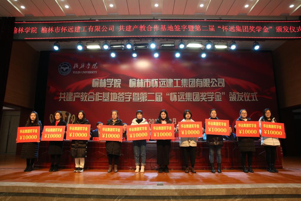 2019年12月16日下午,开元与榆林市怀远建工集团有限公司共建产教合作基地签字暨第二届“怀远集团奖学金”颁发仪式在校图书楼学术报告厅举行。怀远建工集团两年累计出资70万元,共资助开元217名本科生;今年还奖励了开元录取的首届研究生35人, 每人10000元。