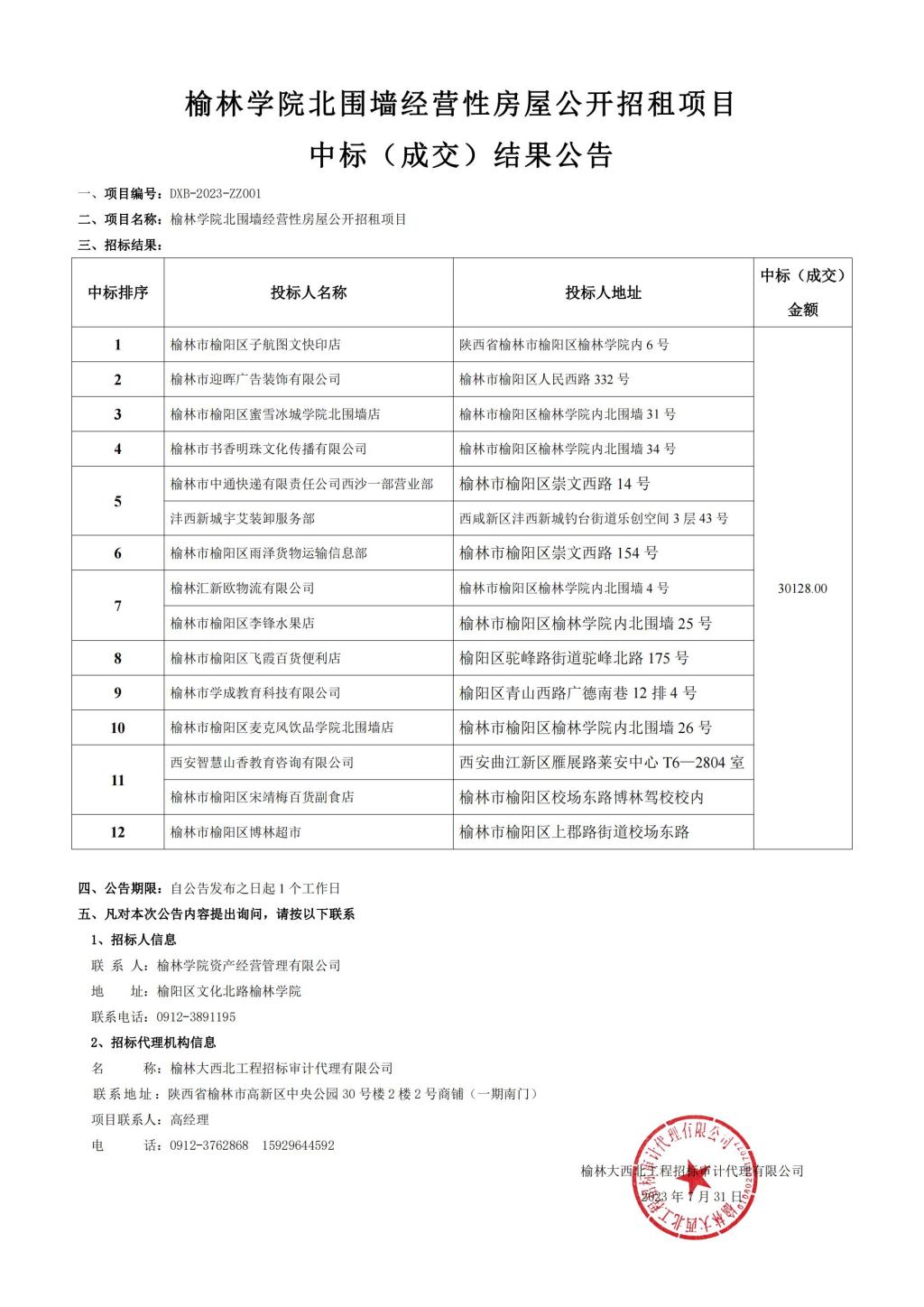 开元集团网站北围墙经营性房屋公开招租项目中标(成交)结果公告