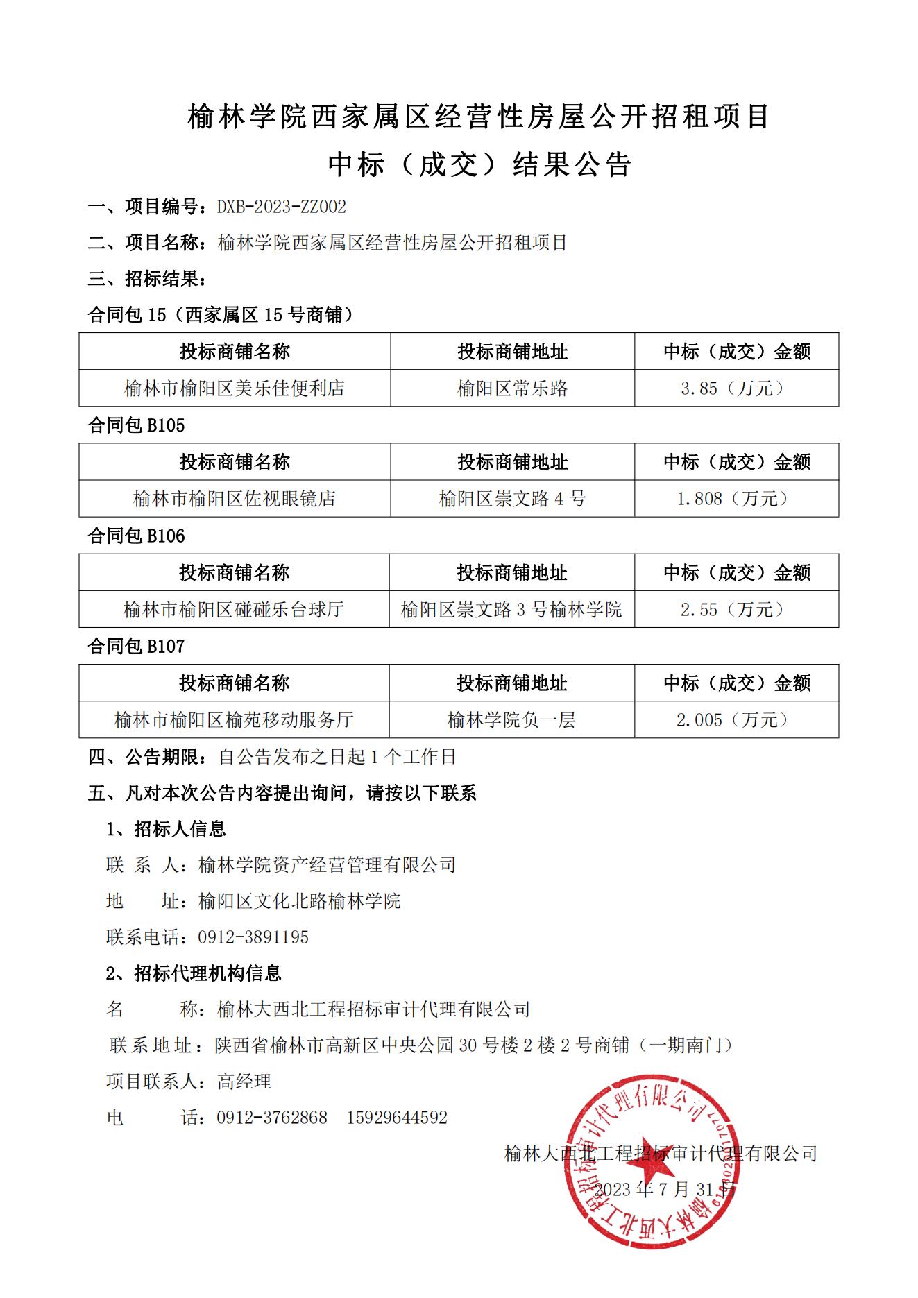 开元集团网站西家属区经营性房屋公开招租项目中标(成交)结果公告