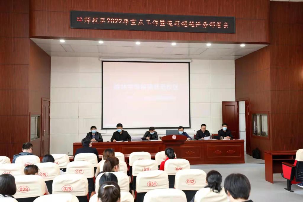 3月24日下午,绥德师范校区召开2022年重点工作暨追赶超越任务部署会。根据疫情防控要求,校区全体教职工以党支部为单元分三组参加会议。