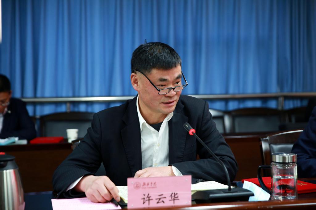 许云华在讲话指出,在学校党委和行政的高度重视下,经过长时间的酝酿、研究和准备,顺利完成了学术委员的换届工作,作为学术委员会主任,深感使命光荣,责任重大,他向新当选的学术委员会委员表示祝贺。