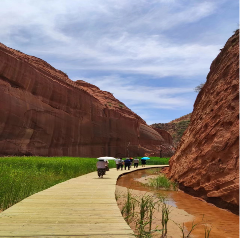 靖边的丹霞独特壮观,是世界第二大丹霞地貌自然景观,被称为龙州丹霞。老干部们虽然年事已高,但个个精神抖擞,兴致高昂,沿途边走边看,谈生活、谈想法、怀念过去,感慨万千。