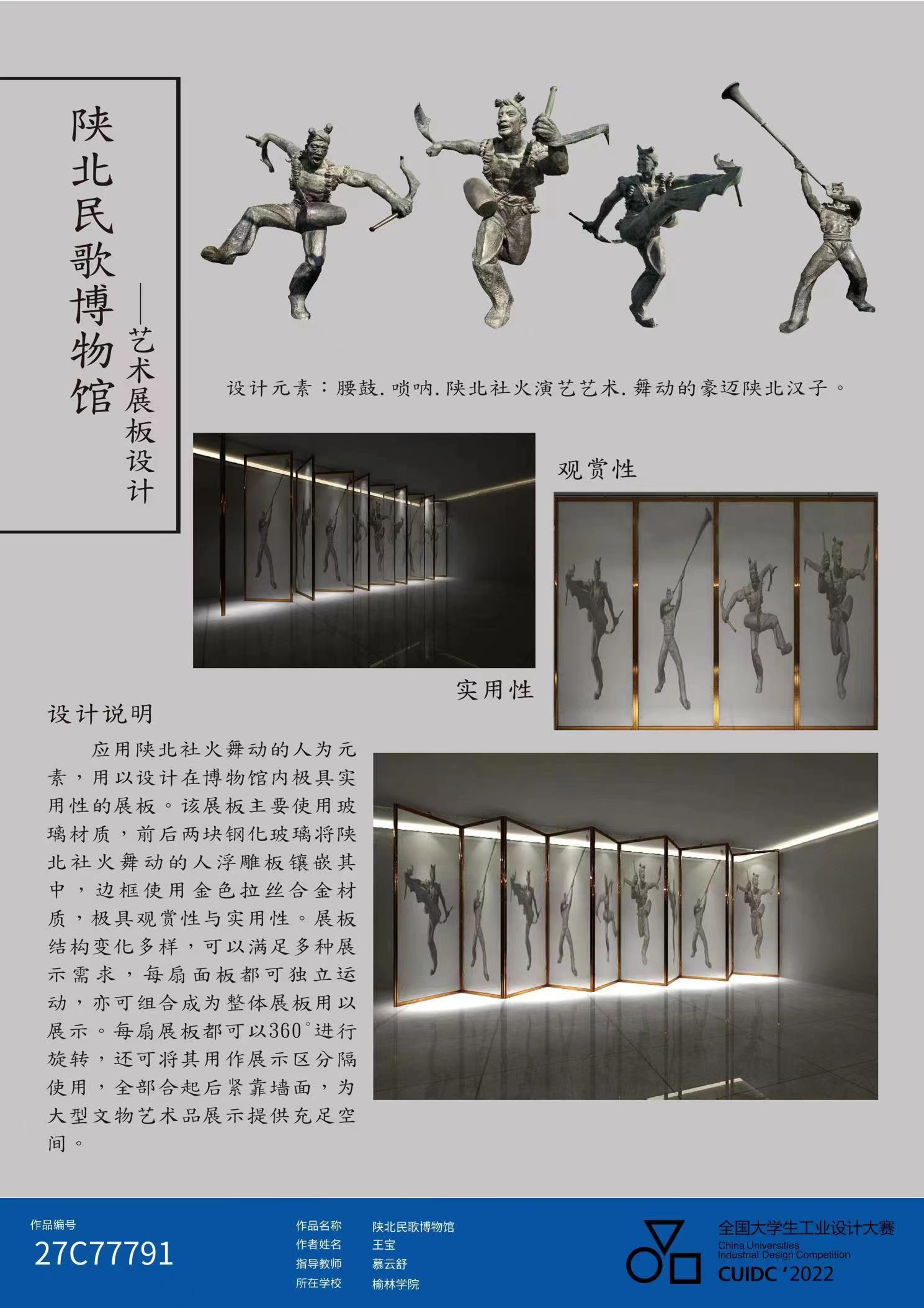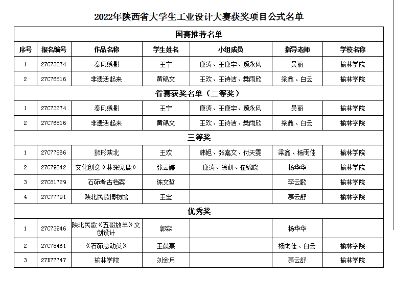近期,2022年陕西省大学生工业设计大赛奖项揭晓,开元艺术学院吴丽老师指导的《秦风绣影》,梁鑫、白云指导的《非遗活起来》获得二等奖;梁鑫、杨雨佳指导的《狮行陕北》,杨华华指导的文化创意《林深见鹿》,李云歌指导的《石峁考古档案》,慕云舒指导的《陕北民歌博物馆》获得三等奖;杨华华指导的陕西民歌《五哥放羊》文创设计,杨雨佳、白云指导的《石峁总动员》,慕云舒指导的《开元集团网站》荣获优秀奖。其中,荣获二等奖的两项作品均推荐入围全国大赛,这是开元学生在大学生工业设计大赛成绩中的又一历史性突破。