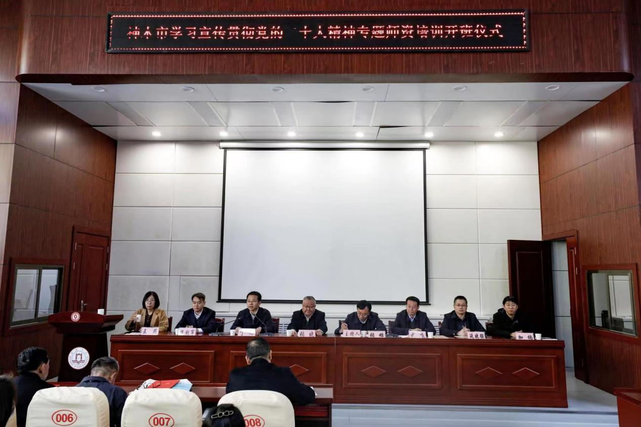 签约仪式后,双方共同在绥师校区第一会议室举行“神木市学习宣传贯彻党的二十大精神专题师资培训”开班仪式。