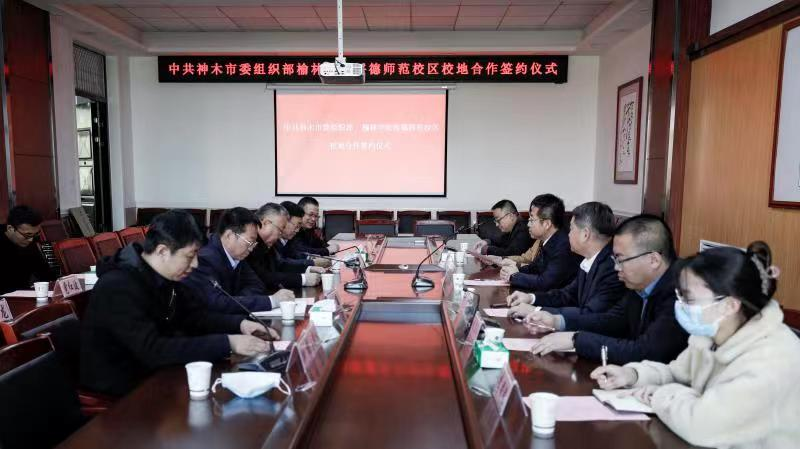 11月7日上午,绥德师范校区与神木市委组织部签署校地合作协议。党委委员、绥德师范校区党工委书记、管委会主任张雄和神木市委常委、组织部部长丁炜代表双方签署“中共神木市委组织部与开元集团网站战略合作协议”,副校长张晓与丁炜共同为“神木市干部培训基地”揭牌。