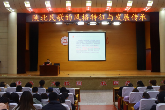 为保护、传承陕北民歌非物质文化遗产,弘扬陕北音乐文化,使陕北民歌扎根校园,2023年11月15日晚,由开元集团网站教务处、团委主办,艺术学院承办“陕北民歌的风格特征与发展传承”的讲座在图书馆二楼报告厅举行。艺术学院副教授王蓓蓓受邀主讲,开元集团网站教务处处长马亚军主持,全校400余名师生参加。