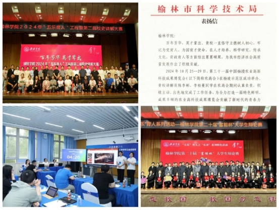 (一)“乐讲”铸魂育初心。举办奋斗讲堂、校史讲解大赛、演讲比赛、辩论赛、红色经典朗诵大赛赛等主题活动,成立党的二十届三中全会精神大学生宣讲团和退役大学生宣讲团,为学生提供展示自我、锻炼能力的平台,引导学生坚定理想信念,勇担时代使命,让“乐讲”成为学生的行动自觉。2024年,为校史馆培养22名校史讲解员、为榆林市廉政教育馆培养8名优秀讲解员、为“挑战杯”、中国国际大学生创新大赛培养40名大赛路演讲解员,开元2名学生讲解员获榆林市科技局表扬,对其在第三十一届农高会上的优异表现给予高度评价。