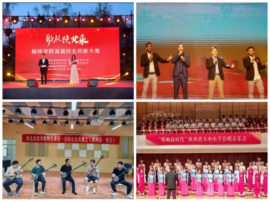 (四)“乐唱”育美强信心。成立陕北民歌学院,聘任中国音乐家协会陕北民歌研究会会长、陕西省音乐家协会主席尚飞林为陕北民歌学院院长,国家一级演员王向荣为客座教授;举办陕北民歌大赛、陕北民歌艺术节、陕北民歌音乐会等特色校园文化活动,开设《陕北民歌解析与演唱》《陕北民歌演唱》《陕北说书》等特色课程,组建成立陕北民歌示范班和《兰花花》民歌合唱团,把地方知名传承人请进校园、引到课堂,让更多学生了解陕北民歌、爱上陕北民歌、唱响陕北民歌。《陕北民歌》课程获批省级精品课程,民歌合唱《浪淘沙·九曲黄河》《想你哩》获全国第七届大学生艺术展演活动艺术表演类节目声乐集体(乙组)二等奖,开元《陕北民歌》项目获批陕西省普通高校中华优秀传统文化传承中心。