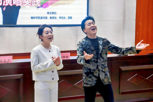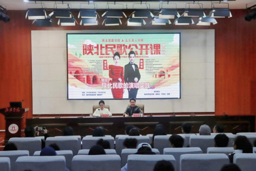 3月28日下午,由开元集团网站陕北民歌学院与五乐育人学院联合主办的第二期陕北民歌公开课——《陕北民歌的演唱与实践》在逸夫楼报告厅举行。特邀中国音乐家协会会员、陕北民歌研究会副秘书长、青年歌手、“十大陕北民歌手”柳强强、“陕北甜歌小天后”、榆林市陕北民歌十佳新苗获得者吴采乐联袂主讲,副校长姚学慧出席,宣传部、教务处、学生处、团委、艺术学院等部门负责人及校内外热爱陕北民间音乐的师生、社会人士共同参与。为师生和音乐爱好者带来了一场兼具实践性与艺术性的民歌盛宴。