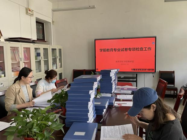 会后教研室教师对2022-2023-1学期的专业试卷进行了自查,主要从试卷材料是否齐全,日期、签名、盖章是否完备;重点审核了课程目标合理性审核表中分值比例、课程目标对应情况;课程评价报告与上一年度是否存在雷同、是否体现持续改进情况。