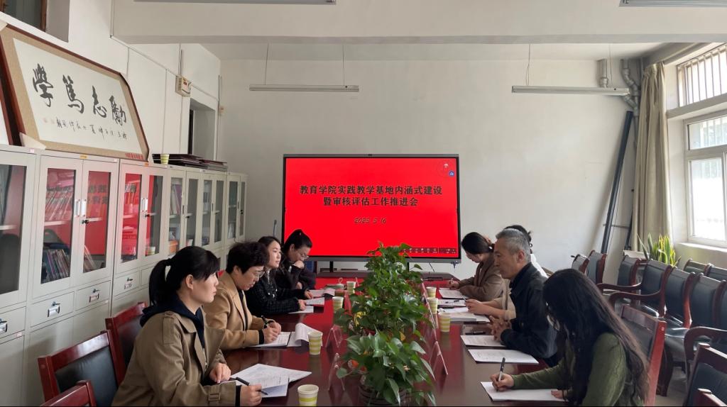 3月16日下午教育学院在部门会议室召开实践教学基地内涵式建设暨审核评估工作推进会。院长亢雄、榆林市高新小学校长王丽、榆林市高新二小教导主任杨江瑞、榆林市第一幼儿园保育主任梁艳芳、榆林市第四幼儿园保教主任尤雄艳、专业负责人郝翠萍、教研室主任高佳宁、郭倩等人出席。会议由副院长冯莉主持。